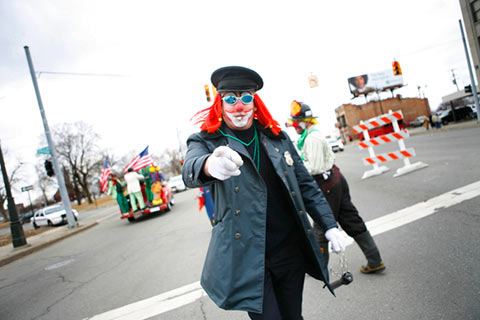The parade starts at 2 p.m. Sunday, March 15, 2009, traveling down Michigan Avenue from 6th to 14th. Revelers line the street to catch candy and beads or enjoy a cold beverage from one of the many Corktown watering holes. Good times.