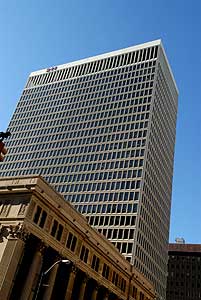 wrapped up in 1963. Amenities include full-height, double-paned windows and services such as banking, a restaurant and a convenience store. There are 450,000 square feet of lease-able space in the structure.