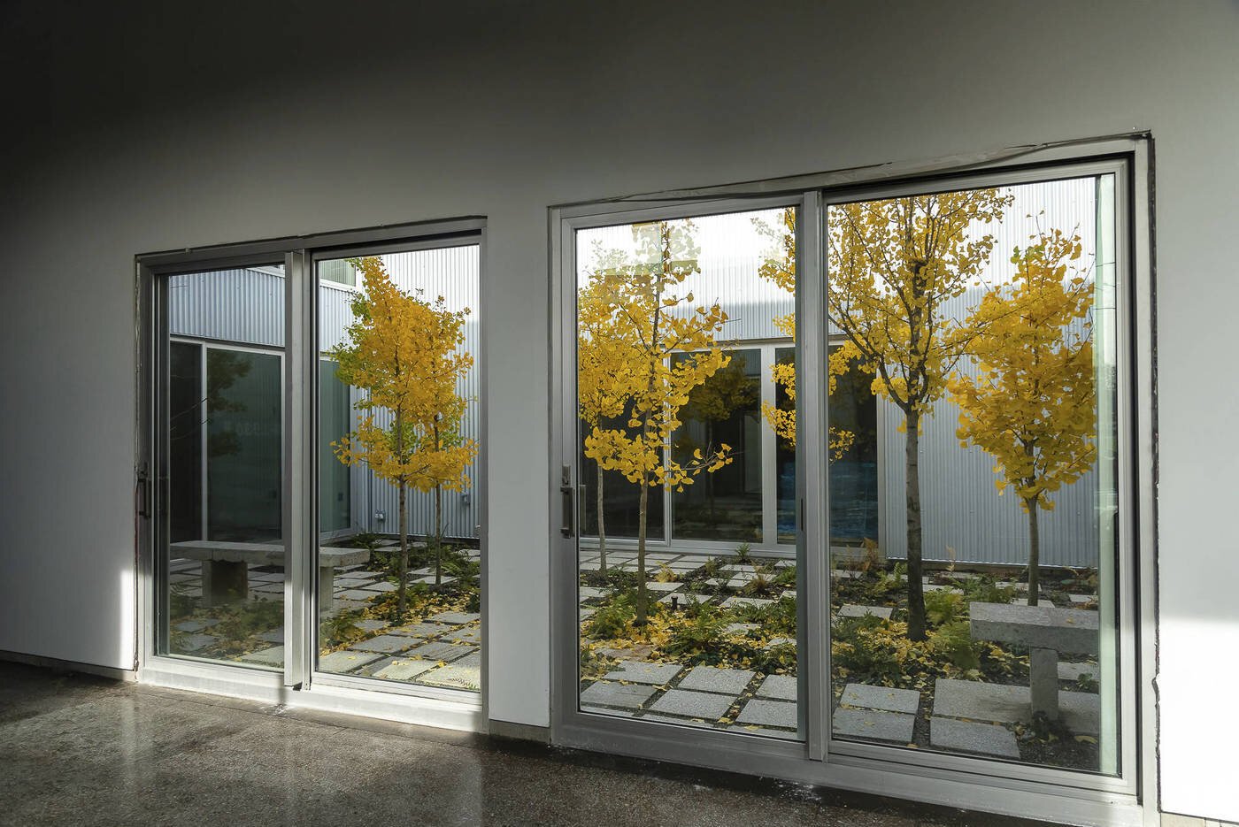 What it is: The original building was first built in the 1950s and was transformed into an office space with three adjoining courtyards filled with landscaping and Ginko trees. The courtyards were created by removing portions of a crumbling roof, offering flexible outdoor working spaces and lounges in addition to the interior office space.