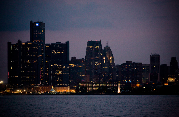 Detroit skyline at dusk
