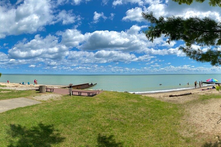 Forestville/Stephens Park is an MDOT roadside park 53 miles north of Port Huron off Cedar Avenue. The Village of Forestville has a population of 127 (according to the 2019 US Census) making it a quiet up-north park starting at the top of a steep bank with expansive views. There is parking at the top for those looking to exercise before hitting the beach or park down at the beach for a laid back day.Â