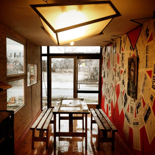 Additionally, the Activi-Tree’s interior is covered in artwork, including stencils by Detroit-artist Eno Laget, as well as prints of former front pages of the Detroit News containing headlines of some of the most significant world events to occur over that paper’s long history.