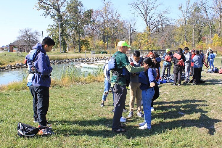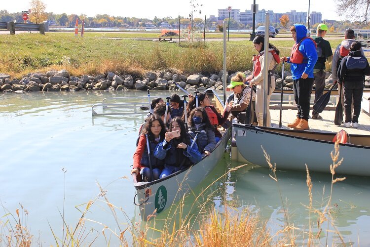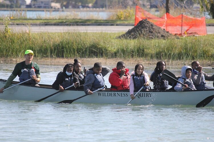 It’s a sunny October afternoon on Belle Isle, and about 80 middle school and high school students are getting ready to go canoeing. Only a few of them have been in a canoe before, and most haven’t been in any kind of boat.