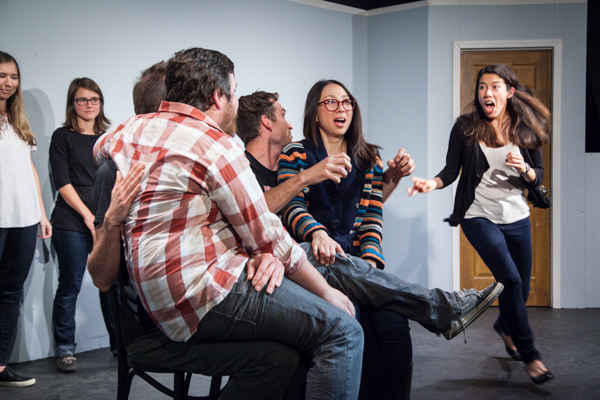 Improv is short for improvisation, meaning that anything performed at a show is created spontaneously based on an audience suggestion. Almost always the stage is a blank canvas — no costumes, props, or set. This makes improv a highly collaborative form of theater because the performers must build the reality of the scene together from scratch. If one person denies something said by another improviser (Example: “That’s not a carrot, it’s a trophy”), then they’re cancelling out each other’s contributions. The most fundamental expression of improv is, “Yes, and…”