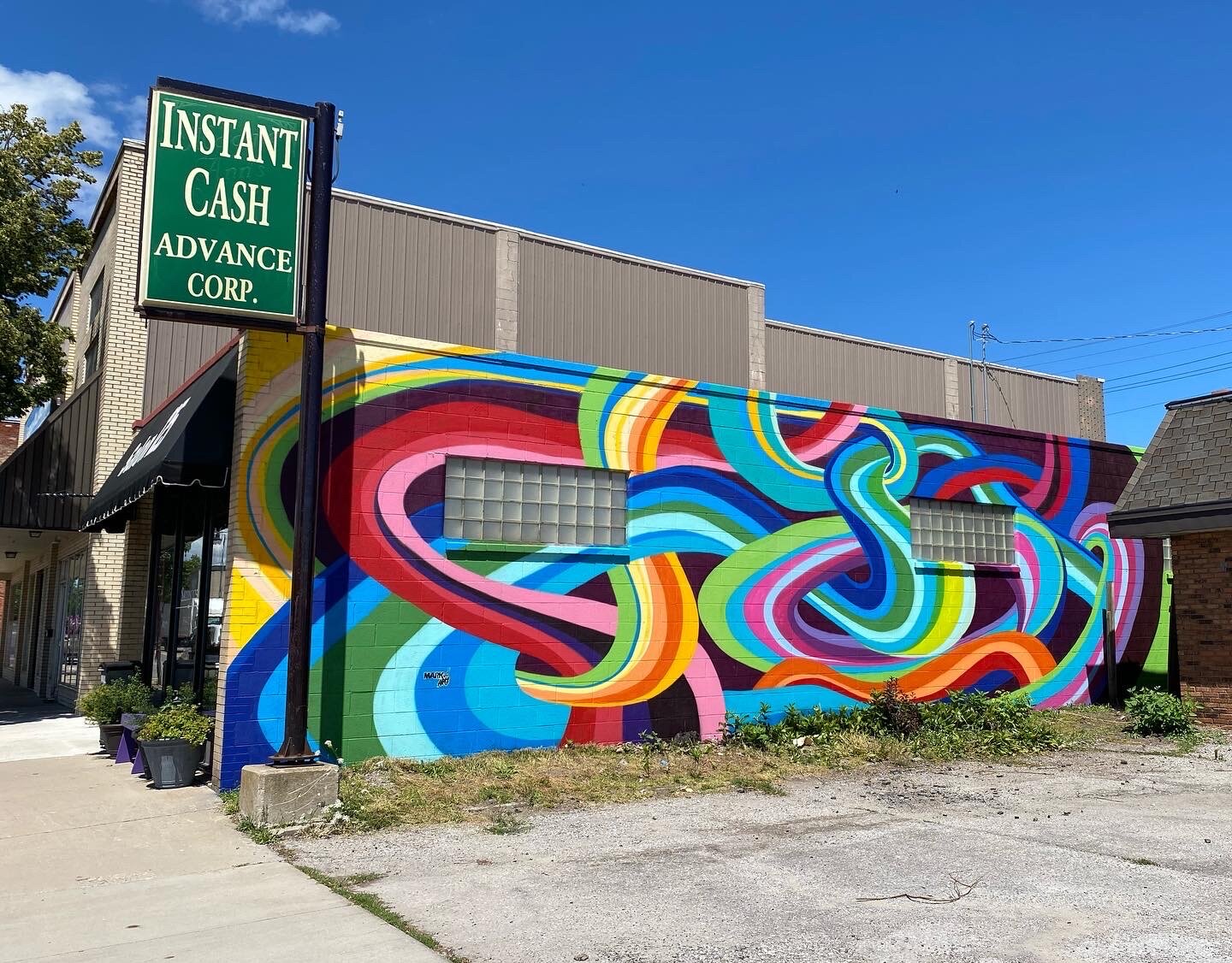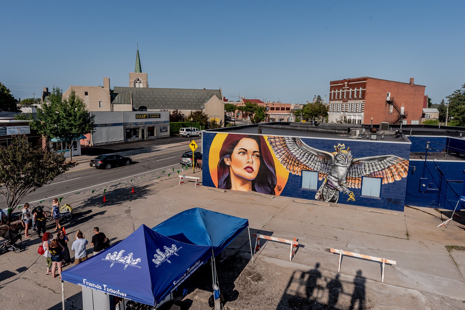 That artist, Aaron Golbeck, ended up painting the program’s first mural that summer on the wall of a local business in collaboration with Denver-based artist Chad Bolsinger. The mural was so well-received that the project continued the following year, quickly becoming a multi-year project that extended into 2021, providing stipends to artists and covering the costs of materials while revitalizing Alpena’s downtown area.