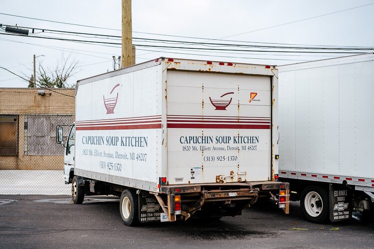 On a grey morning in early August, a handful of people gather on the cement patio outside of the Capuchin Services Center in Detroit’s Gratiot Town-Kettering neighborhood. Inside, several women are waiting to check in before picking up necessities like groceries or clothing from the nonprofit’s distribution program.