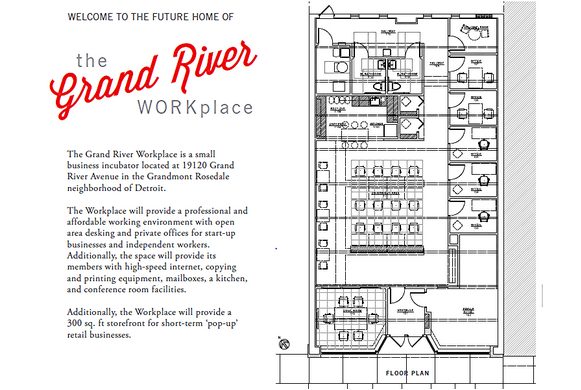 Called the Grand River WorkPlace, the 2,800 square foot co-working facility at 19120 Grand River Ave. will officially open for business Nov. 1st. WorkPlace will offer many of the amenities expected of a co-working facility these days, including conference rooms, printing capabilities, WiFi Internet access, personal mailboxes and lockers, parking spaces, a community kitchen, and small business development programming.