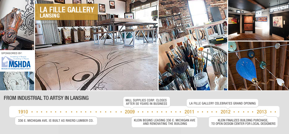 The transformation of a historic lumber mill-turned industrial equipment manufacturer into an art gallery and studio in Downtown Lansing sounds dramatic enough. That’s even before one considers that Mill Supply was no ordinary industrial business and the new La Fille Gallery is far from the regular ‘ol art studio.