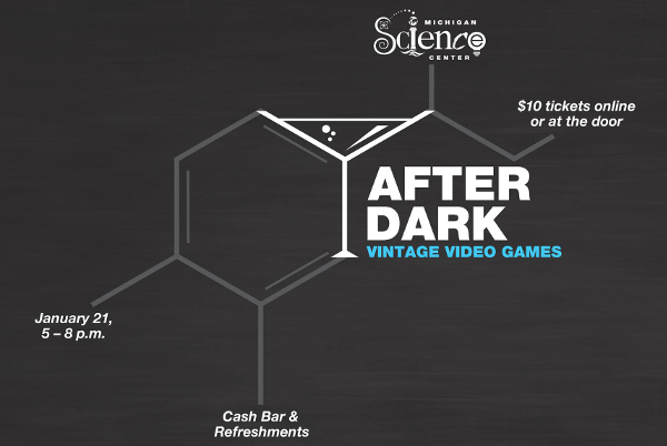The Michigan Science Center invites adults 21 and over to play vintage video games at its monthly happy hour, MiSci After Dark, on Jan. 21.