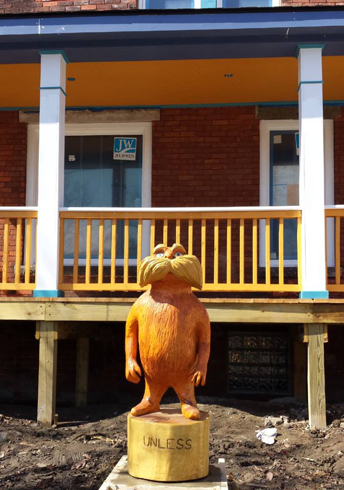 At what is sure to become known as The Lorax House, developer Alex Pereira of Secure Realty, LLC has commissioned two artists to liven up Trumbull Street as it runs through the Woodbridge neighborhood. A mural and a sculpture inspired by the Dr. Seuss book The Lorax are being placed in the front lot of 4759 Trumbull. The sculpture installation is planned for today.