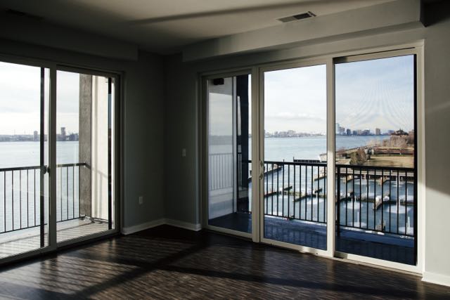 Sedillos says that 90 percent of the units have a view of the Detroit River, and every unit in the building has its own private balcony in addition to modern appliances and amenities.