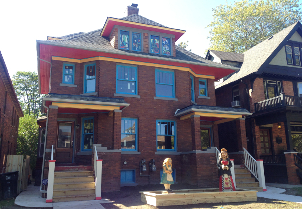 He’s already working on a fourth property, 4305 Trumbull Ave., a stately manor in a condition of serious disrepair and neglect. No word yet on that building’s future theme.
