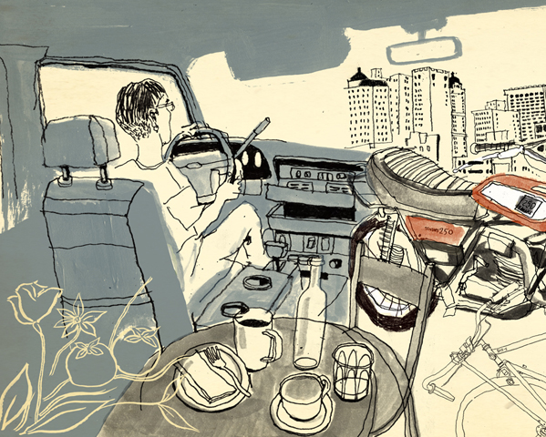 It’s Bastille Day, and a hundred or so people wearing moustaches, black and white striped shirts and their best smug Parisian expressions have walked to the top of this long, flat-topped mound in Milliken State Park. Proud Detroiters have picked this spot to tease out the French roots of their city, assembling against the backdrop of the setting sun and the lights of the Windsor-Detroit skyline.