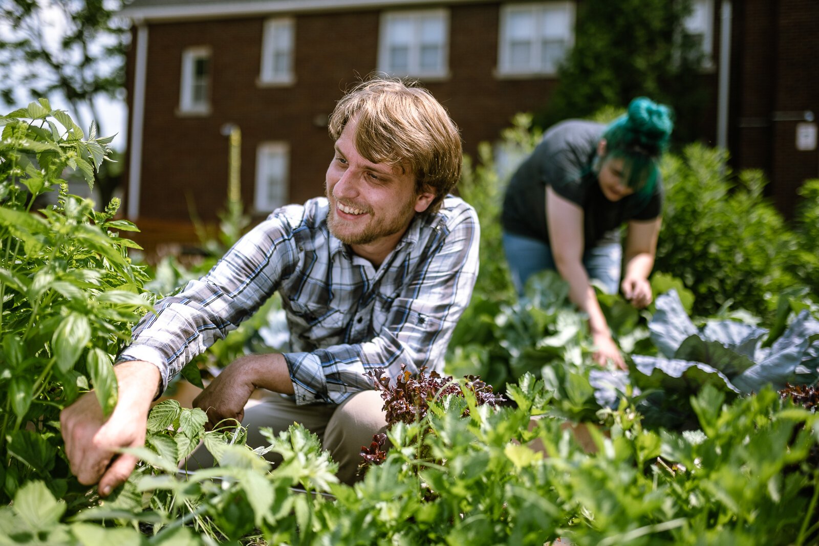 Lauren Potorek and John Peterson in AIHFS’ garden.