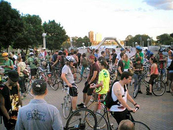 Although it may be synonymous with the automobile, Detroit is home to a thriving underground bike culture. But while the numbers are growing, many cyclists aren’t connecting with one another. “I see a lot of cyclists who are jerks to each other,” said Shelton. “People from different subcultures are hard to approach. Everyone seems to have his or her own scene. For example, there’s a heavy fixed- gear culture here,” he explained, referring to a growing group who modify their bikes into single-speeds and forgo the use of brakes. “The fixies don’t talk to the roadies and the roadies hate the touring cyclists. I’ve been trying to break down those walls. I want the Alleycats to bring people together.”
