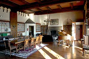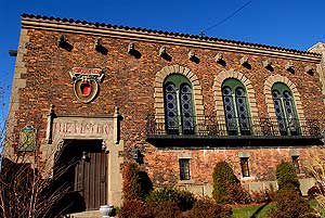 More impressive than the stage performances, however, is the interior of the auditorium: high, peaked ceilings with painted wooden roof beams; carved stone columns and arches; and wall murals painted by Paul Honore. During intermission, Hurtienne, acting the part of playhouse docent, takes us through the Florentine Renaissance-style building, affectionately called “The Beautiful Lady” by its members. The 90-plus years of documented history on the walls makes it seem like we’re exploring a museum. We climb the circular cement staircase up to the Founder’s Room, where photographs of the Board of Governors and beer steins, marked with the Players crest and each member’s name, line the walls. For every frolic, there’s a framed caricature of the frolic’s players as a group. Hurtienne points out one of his, and explains that there have only been five different artists drawing these amusing renderings throughout the years.