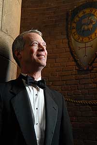 Before the “frolic” (the member lingo for their standard series of three one-act plays), all the member-players stand up, lift their steins and join in a raucous singing of the official song, “When the Day is Done.” Chairs squeak, corks pop, pretzels crunch — and the show begins. Any time a woman (played by a man, of course) walks onto the stage, the audience erupts into a giggly fit of hooting, clapping and whistling.