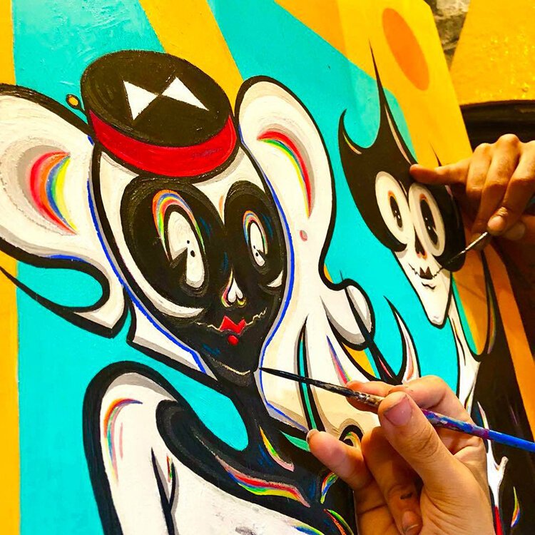 Drawing on the strength and persistence that initially led to their success as working artists, the Smyths haven’t let the pandemic stop their work — or their vision of supporting other creatives. Quickly pivoting, Armageddon Beachparty began selling masks online, in addition to finding unique ways to continue bringing their lively events into the homes of their patrons while creating opportunities for the artists and performers they’d built their business around supporting.