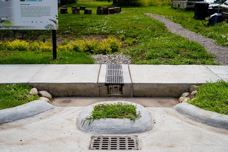 The rainscape is a large rain garden, using landscaping and plantings to divert water from the city’s combined sewer system, which can send untreated sewage into lakes and rivers during large storms. It could also lessen the flooding created by rain events. In addition, the project has helped to beautify a vacant lot and create an outdoor classroom for Hamilton Elementary-Middle School.