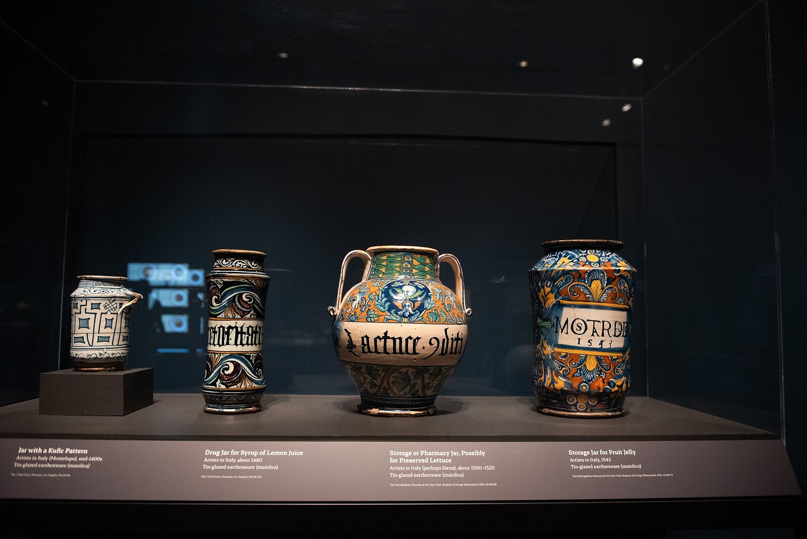 There are decorative 1,000-year-old water vessels (pitchers) which were used to gather water from a canal in Bagdad and glazed jars used to store syrup, lettuce, and jelly.