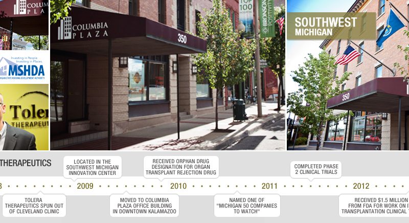 Leaving the incubator and finding a visible place in the community can be a big step for a fledgling company. Tolera Therapeutics moved into Kalamazoo's historic Haymarket district, and it's glad it took that step.