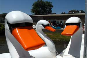 Near Flynn Pavilion, the swan boats (pictured) have arrived, and Jackson says to be on the look-out for the dragon boats that will soon join them. (Now, let’s see a creative use of the Eero Saarinen-designed pavilion itself…)