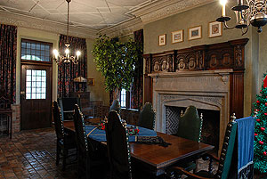 wood paneling above the fireplaces in the conference room and chapel,