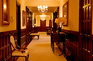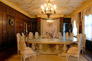space, lit by the fires of 10 intricately carved marble fireplaces.