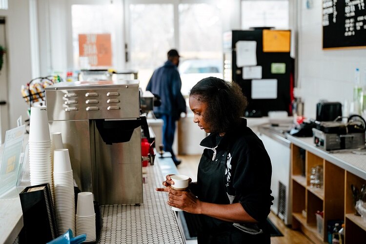 “Residents wanted a space where they could come and grab a sandwich or a latte, but they also needed a space where they could be able to do their laundry that was safe, clean, and inviting,” says Jackson. We also knew residents, block clubs, and neighborhood associations wanted a space where they could have a town hall or session with someone downtown, so we have a common space on the second level of our building.”
