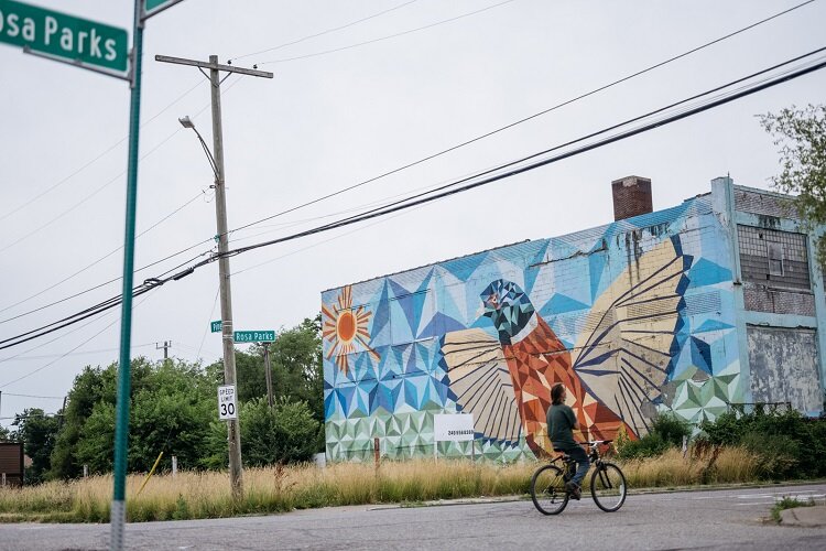 North Corktown is another area of Detroit that’s seeing a lot of innovation in terms of public space. Sitting between I-96, I-75, the Lodge Freeway and Martin Luther King Jr. Boulevard, the neighborhood has long been home to a variety of unique parks and outdoor installations. These include: Fish Park, a pocket park at the intersection of Cochrane and Ash streets featuring the “Trout Perch” sculpture by created by artist Tom Rudd; the Cochrane Birdhouses, a series of birdhouses built on private property at the corner of Cochrane and Temple streets; and the “Monumental Kitty” sculpture at the foot of the Cochrane Pedestrian Bridge that was built by local sculptor Jerome Ferretti.