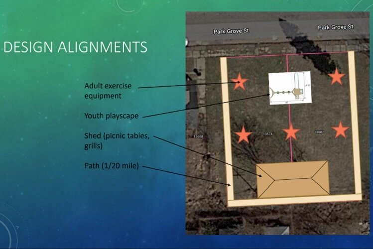Located on a site off of Park Grove Street between Schoenherr Street and Gratiot Avenue, the park will feature a walking path, user-friendly exercise equipment, sitting area with picnic tables, a shed, and a pavilion. The group envisions it as a place where residents can exercise, host family gatherings, and attend events like the annual block club picnic.