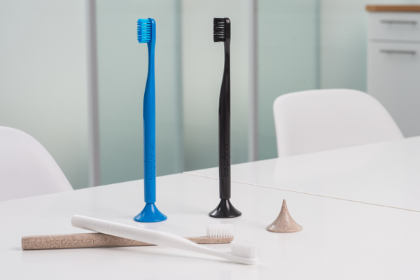 The new Bogobrush toothbrush comes with a stand (also made of the bioplastic) and compostable nylon bristles. The whole package is just as biodegrable as the previous version, meaning it can return to the earth within a few months if tossed out into a compost pile.