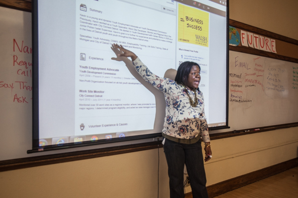 On a frigid Friday in February — Valentine’s Day — students at Edwin Denby High School paid close attention as teachers Mia Sanders and Kevin Cooper led a class on digital etiquette and its implications for employment.