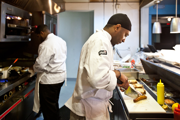 Although they’ve only been open a few months, the restaurant’s practices have already made a difference in the lives of its employees. I spoke to maintenance worker Torsia Brooks, who used to have her own cleaning company until the economy bottomed out, at which point she was forced to work in a franchise earning less than half of what she used to for large cleaning jobs. Not only does Colors pay her a fair wage, but she has been trained in all of the restaurant’s job positions. “This has been a great experience because I’ve learned so much more than cleaning,” she says.