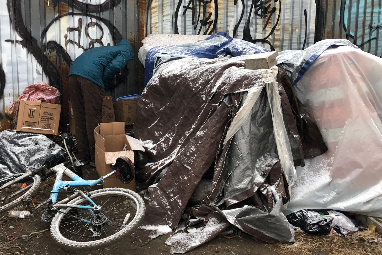 In this role, Stinson sends a text once or twice a week to more than 100 people. Hey, it’s outreach. How’re you doing? Do you need anything? Any medical concerns? Have you been to the clinic? Women text back: I need two blankets, something to eat, warm clothes, a ride, infection relief, help getting an I.D. He says he wants to find folks who need care, any kind of care, and do whatever he can to meet those needs. Not far from trending restaurants, pulsing casinos, and high-rise lofts, Stinson looks for the hidden, the displaced, and discouraged.