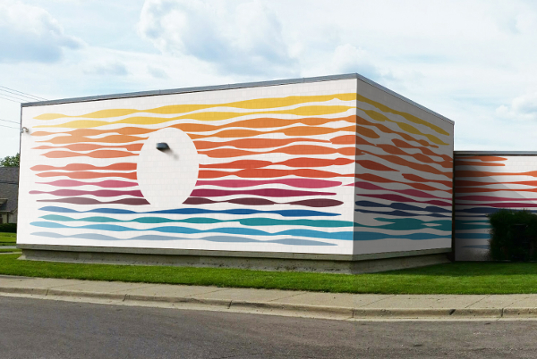Crowell, on Lahser south of McNichols, is a community center in the truest sense of the term. Over the past few years, the city and neighborhood groups have invested heavily in making the space beautiful, accessible, and sustainable — from the many amenities indoors to the hills, trails, ball fields and playscape that surround it. We are honored to paint a mural that reflects the vitality and inclusivity of the Crowell community.