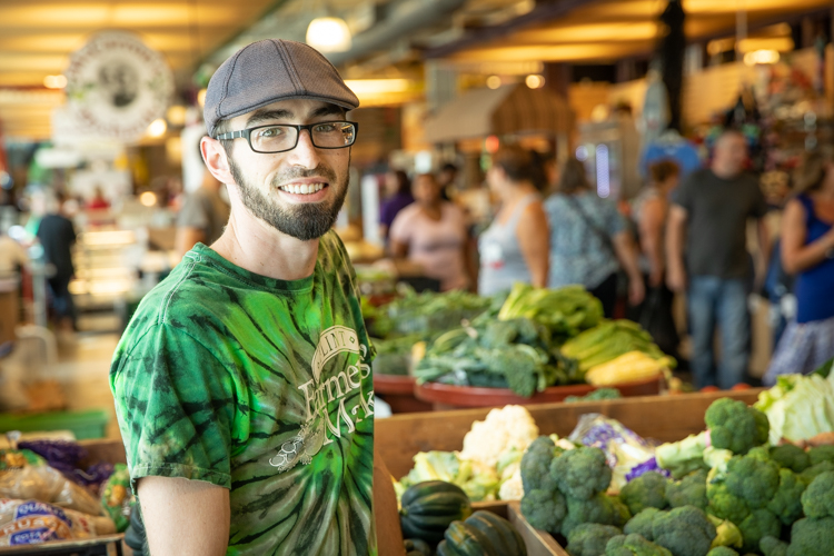 Mike Naddeo – Flint Farmers Market vendor Clinton Peck, who prepares bags of produce for prescription holders.