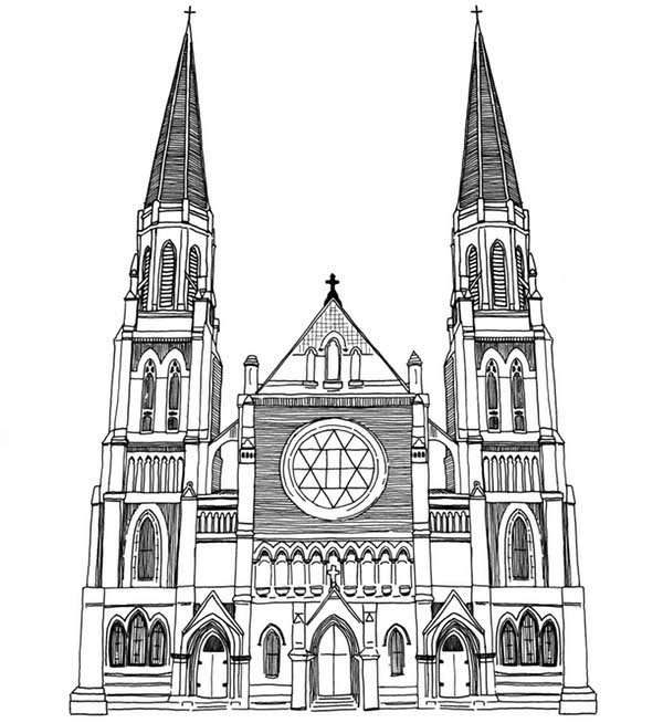 Illustration of Ste. Anne de Detroit by Emily Linn for Belle Isle to 8 Mile.