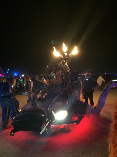 Part of the Burning Man experience is to simply bear witness to the hundreds of art cars that make their way to the desert each year, and must be officially registered by the Department of Mutant Vehicles to drive onto the playa. The range of offering and creative endeavor is incredible. From human powered pedal contraptions, seating four, to huge military vehicles and busses that have been retrofitted with multiple seating/standing platforms, and decked out in all manner of design and decoration, sometimes costing millions. Instead of attempting any further description, let me Google that for you. Search the images and you will get what I’m talking about. You will probably find Gon KiRin, the dragon. In the coming weeks and months, you’ll likely see the CarCroach.