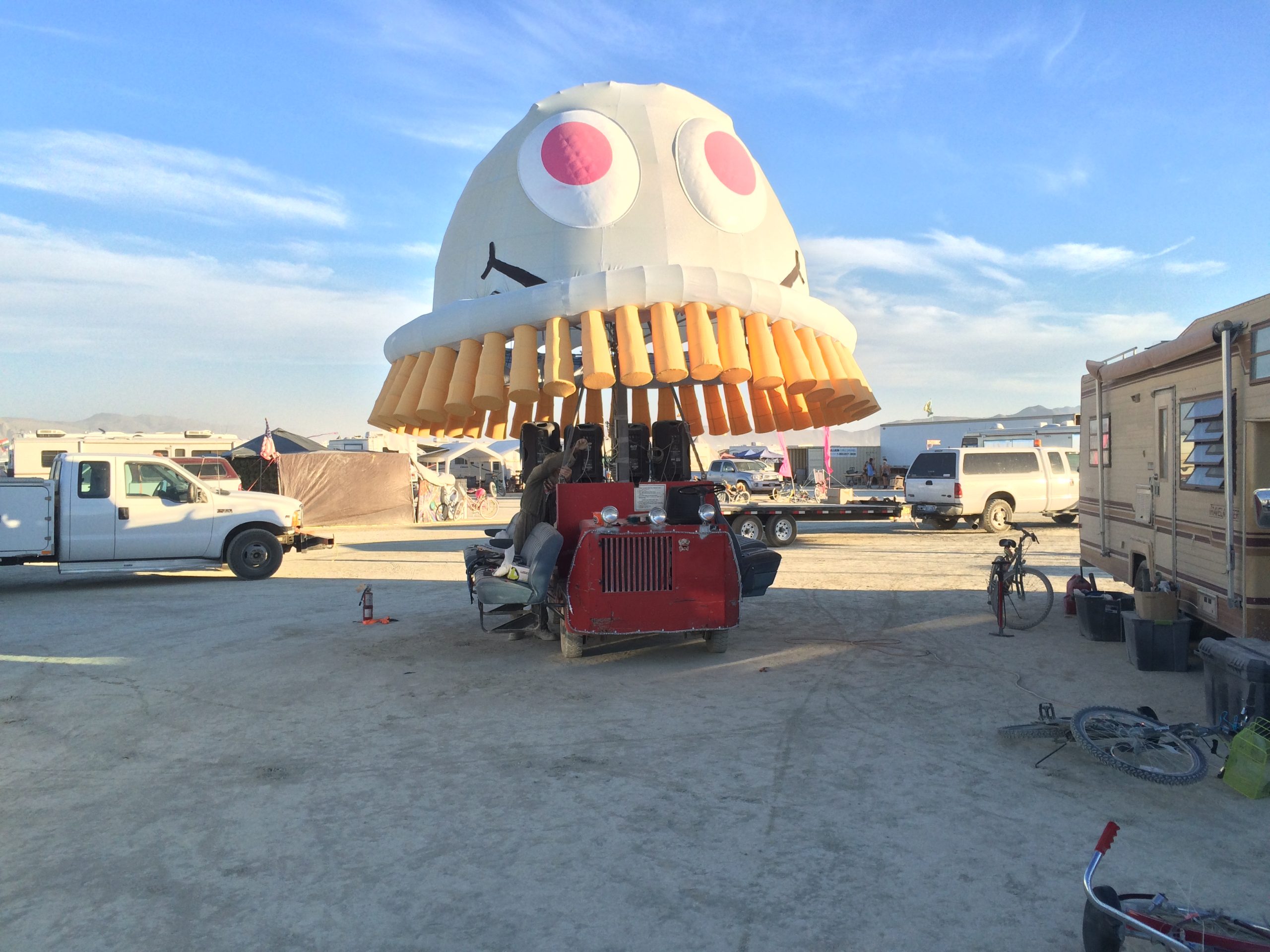 And no doubt, you’ll soon see images of “Scrubby,” another art car at our camp. Scrubby is the brainchild of Eddy Bullock, whose partner, Gillian Bentley, was also an instrumental supporter in the process of bringing the project to life. After attending his first burn last year with Bentley, Bullock knew that he wanted to build an art car.