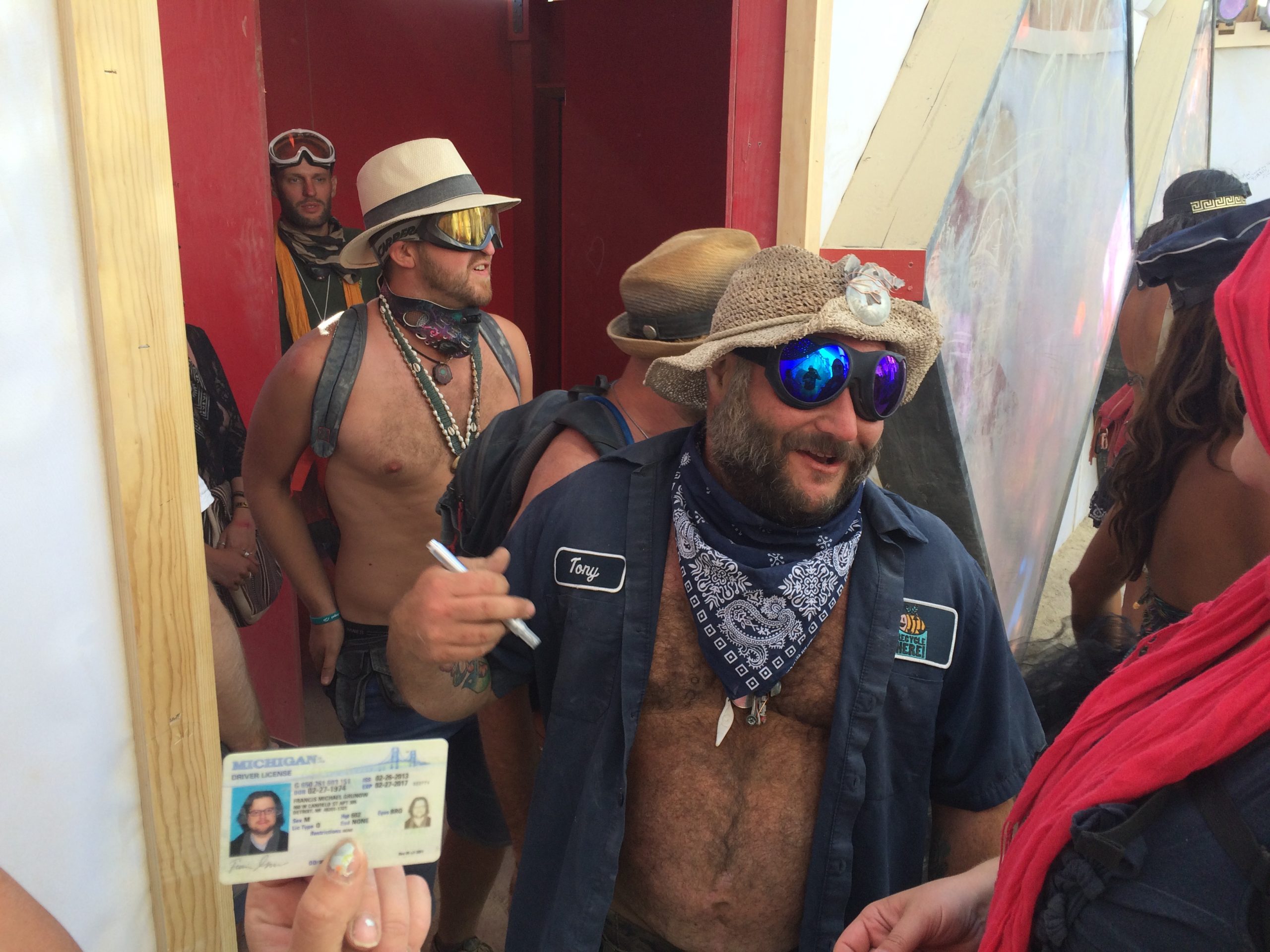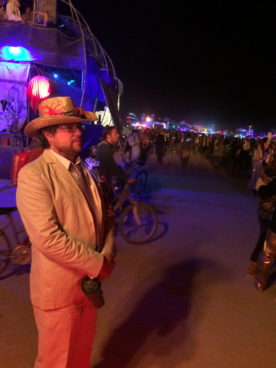 Beyond Esplanade, streets run in concentric circles away from the man in alphabetical order with a series of names, from Arcade to Laughing Sal, related to the festival’s theme. This year it was the “Carnival of Mirrors,” and you could find a number of funhouse attractions (mazes, games, and yes, mirrors) in the tents and structures immediately adjacent to the man. Perpendicular to the alphabetical streets, numbered streets run clockwise, according to a clock face, from 2 to 10 o’clock.
