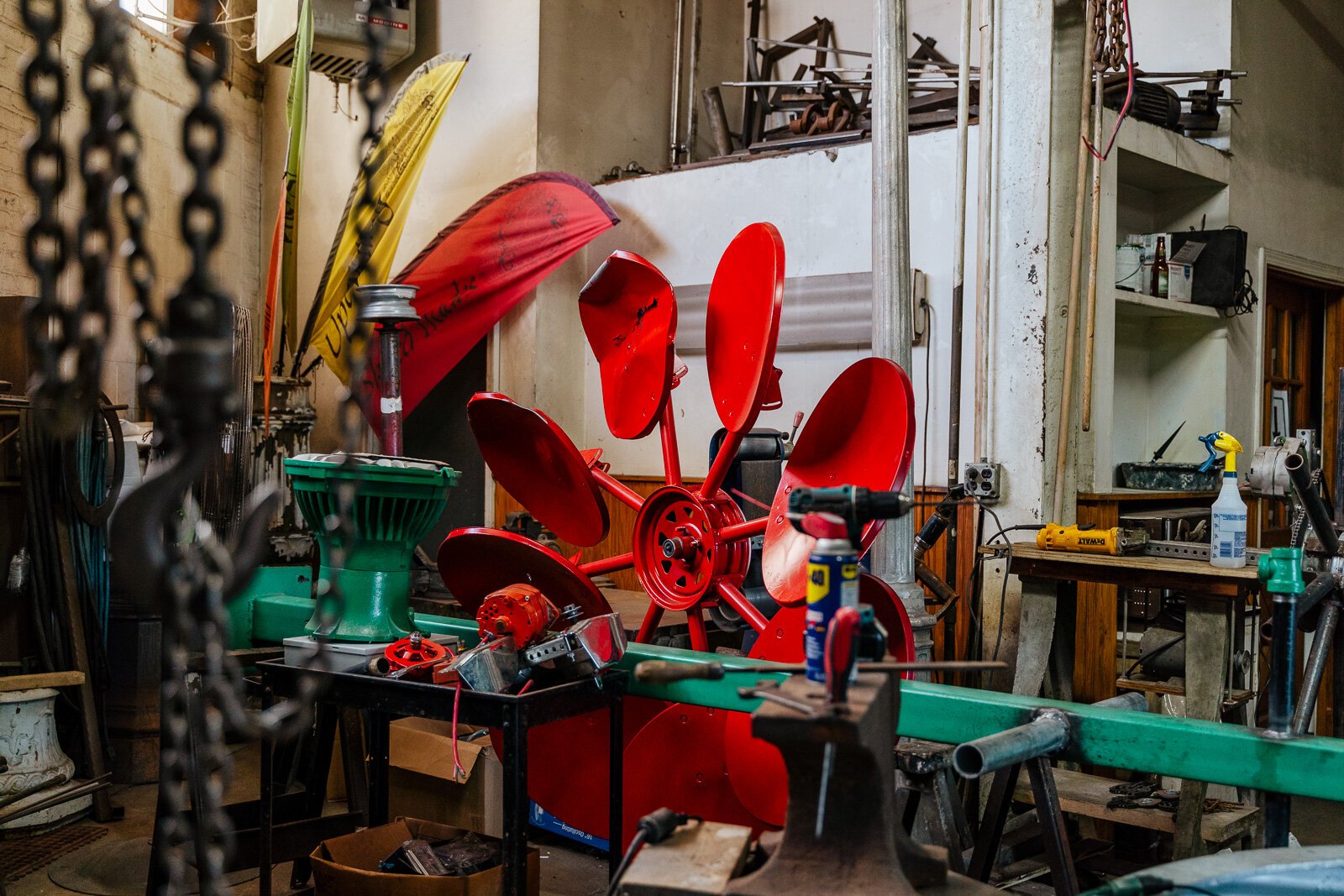 The sign’s creator, master craftsman Carlos Nielbock, explains the sculpture, made out of found objects sourced from an old car assembly line, is designed to showcase the pieces’ functionality and quality. It’s the German-born artist’s particular homage to his adopted hometown of Detroit.