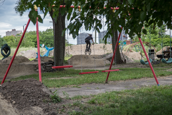 “Basically, all we wanted to do was build one jump,” says Justin Thompson, who helped Gall piece together Brush Park’s BMX park last spring. “After that first jump, this woman approached us and asked us what we were doing and if we had permits. Of course, we lied and said we did, and she said, ‘No you don’t because I’m head of the Brush Park CDC.'”