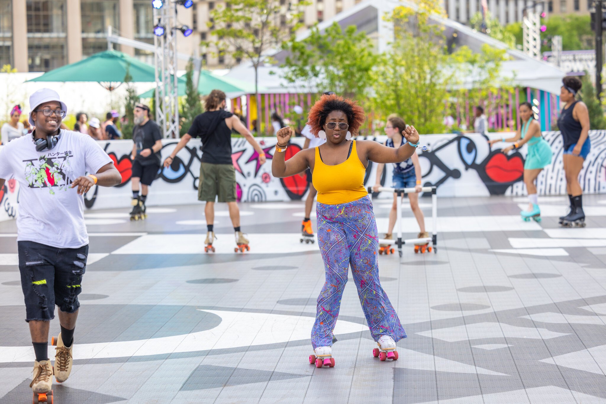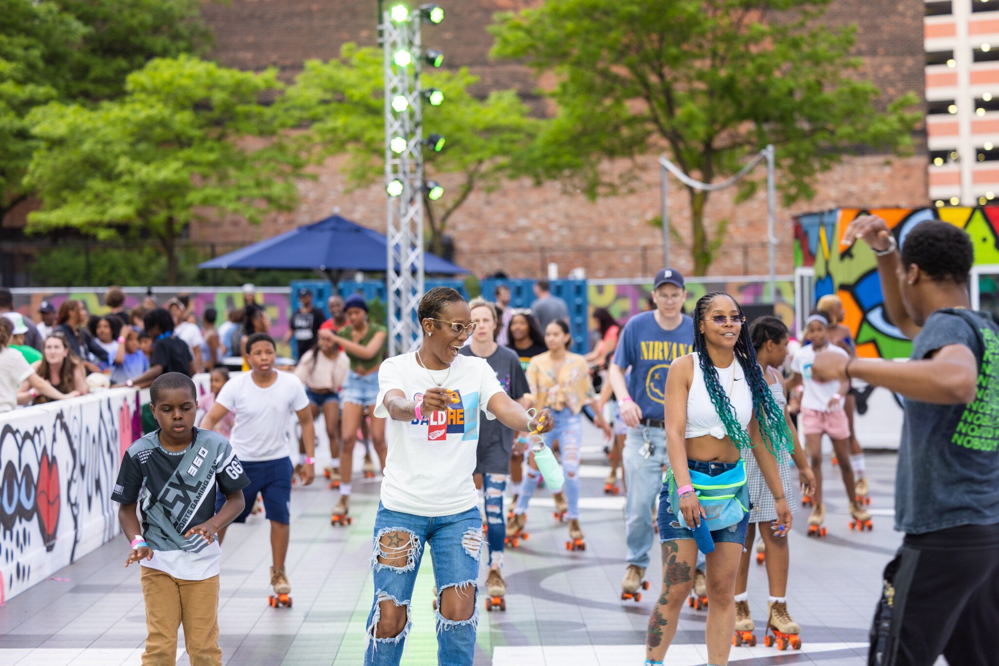 Surrounded by fashionable murals by local artists, one of the oldest Black-owned roller rinks in the U.S. provides a vibrant space for outdoor fun. The scene at Monroe Street Midway is dominating selfies and social posts this summer.