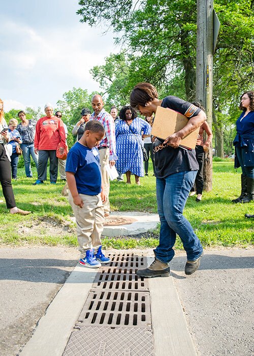 For Rodriguez, this is where she knew she could contribute to the L+WW Coalition’s vision. She signed on to become a part of their ambassador program, which teaches residents and nonprofits about the social, environmental, and economic benefits of GSI practices and land and water stewardship. Rodriguez is one of 77 ambassadors who, over nine months, underwent a 52-hour soft-skills and technical training program and then, in turn, shared their new skills and knowledge with their communities. To date, coalition ambassadors have impacted over 34,000 residents, nonprofits, small businesses, and faith-based organizations. Often, connections were diligently forged one person or one organization at a time.