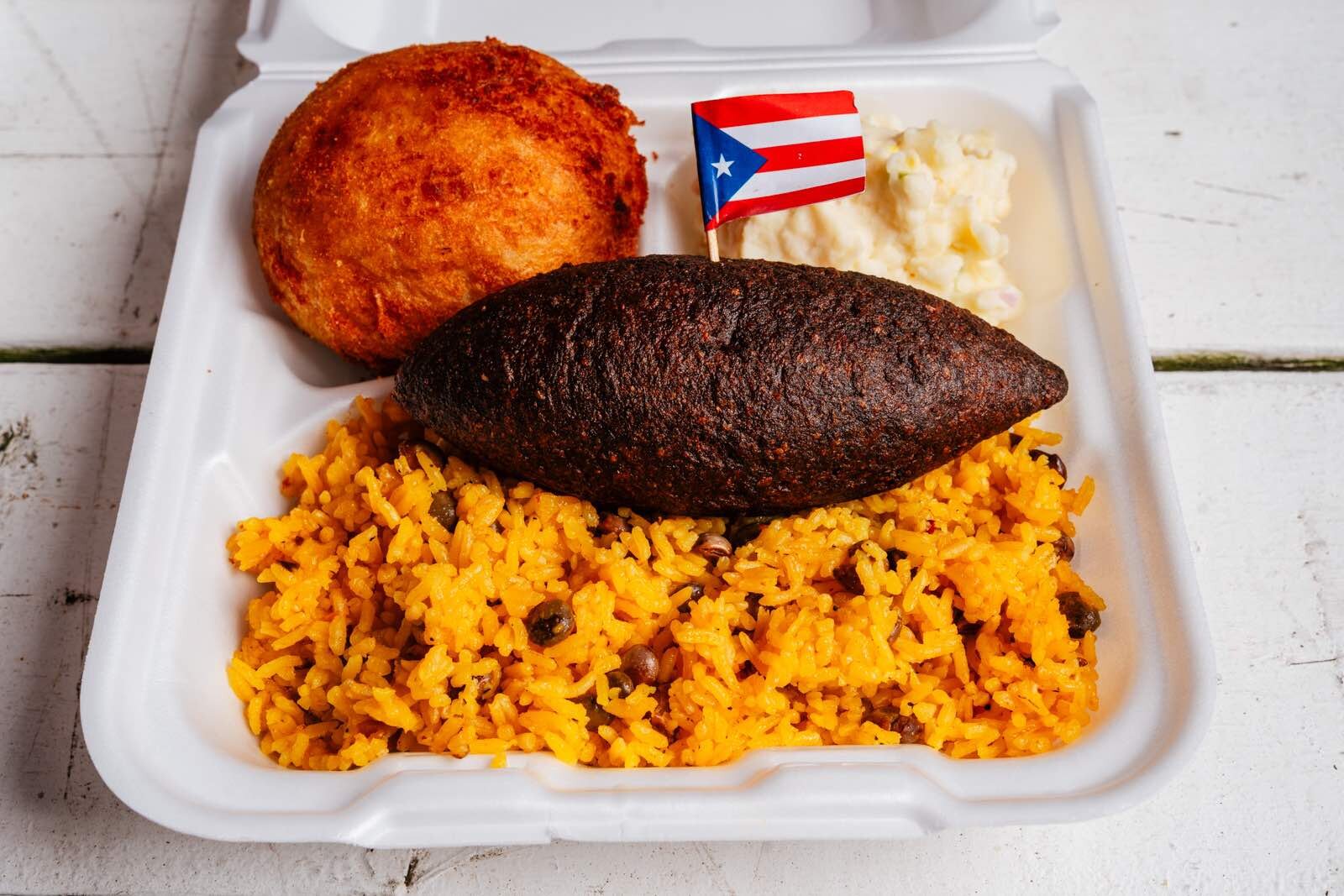 Nick Hagen – Rice and pigeon peas with an alcapura, a Puerto Rican fritter, at El Amanecer in Ecorse