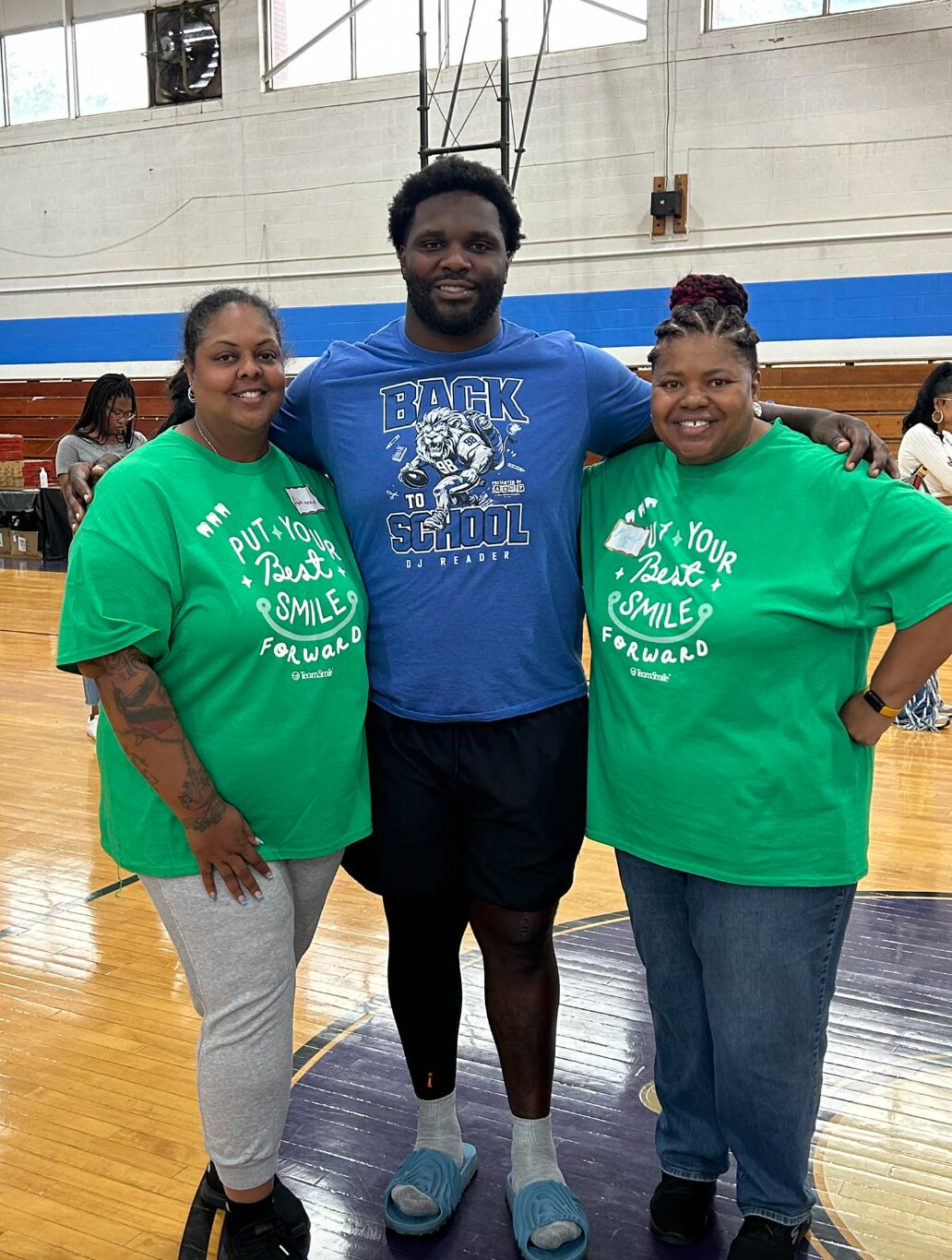On Monday, representing his foundation “A Son Never Forgets,” Reader appeared at a back-to-school event at Paul Robeson Malcolm X Academy on the city’s west side, meeting with students and parents, supporting a dental screening initiative while handing out backpacks, school supplies and food provided by his foundation.