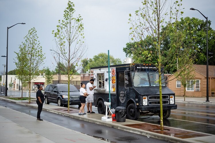 “What’s going on around here, it’s almost like what’s going on along Livernois. They’re really trying to make the neighborhood walkable, bikeable, visitable,” he says. “When I heard from EWDC that [Food Truck Fridays] was happening, I got to check it out, and I’m really happy I did.”