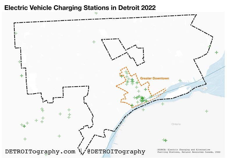 Mapping Detroit: EV charging stations across the city tell an interesting story