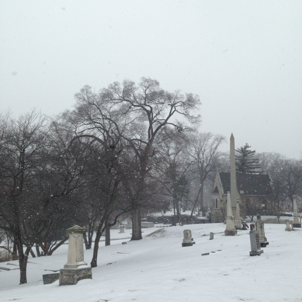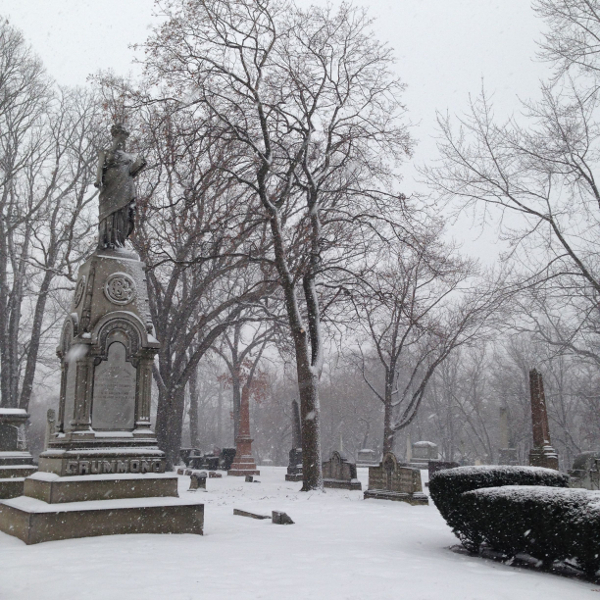 There are over 1,400 trees on Elmwood’s grounds, representing 91 species, including black locusts, hawthorn, beech, willow, ash, American plum, and domestic pear. As part of the arboretum accreditation process, a tree survey was taken at Elmwood and all of the cemetery’s trees were assessed, identified, and tagged. In the spring, the cemetery will add interpretive signs that identify trees by species and common name. (The signs will include scannable QR codes, too.) A tree map will be available to download from Elmwood’s website, and the cemetery plans to expand its educational programming by offering free “tree tours” for visitors who are interested in learning more about the arboretum. (Some historical background about Elmwood’s permanent residents will be included for good measure.) The first tree tour is scheduled for May 20.